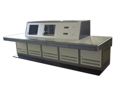 監(jiān)控操作臺工藝特點: 選用材料: 優(yōu)質(zhì)冷軋鋼板 表面處理: 脫脂、酸洗、磷化、靜電噴塑 產(chǎn)品特點: 外形美觀,工藝精湛,采用鋼木結(jié)構(gòu)更豪華更氣派 。 可安裝各種臺式液晶顯示器。 拐角處做圓弧處理,美觀時尚。 大小及尺寸可以根據(jù)需要制定。